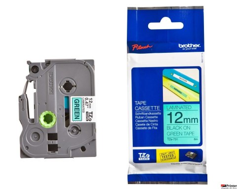 | Nazwa B2B | Taśma BROTHER TZE-731 12mm zielone tło czarny druk |