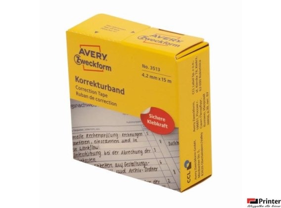 • Taśmy korekcyjne, 1 wiersz (podajnik), 4,2 mm x 15 m, białe, AVERY ZWECKFORM, 3513