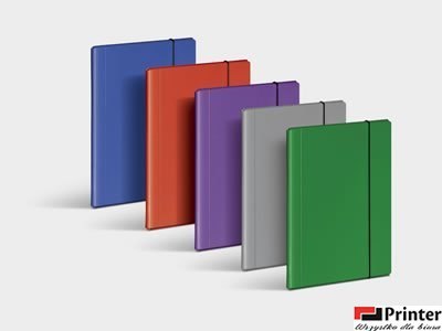 _wykonana z twardej tektury o grubości 1 mm__format A4__szerokość do 20mm__dwustronnie barwiona, laminowana folią polipropylenową__gumka w kolorze czarnym