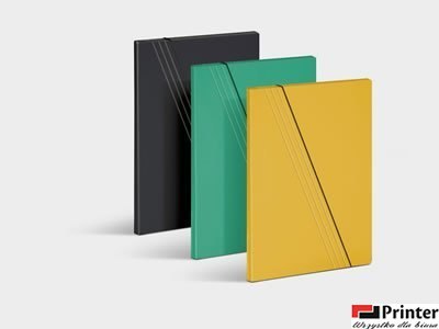 _wykonana z tektury _o gramaturze 700 g/m2__format A4__szerokość do 20mm__jednostronnie barwiona, powlekana folią polipropylenową__gumka w kolorze czarnym