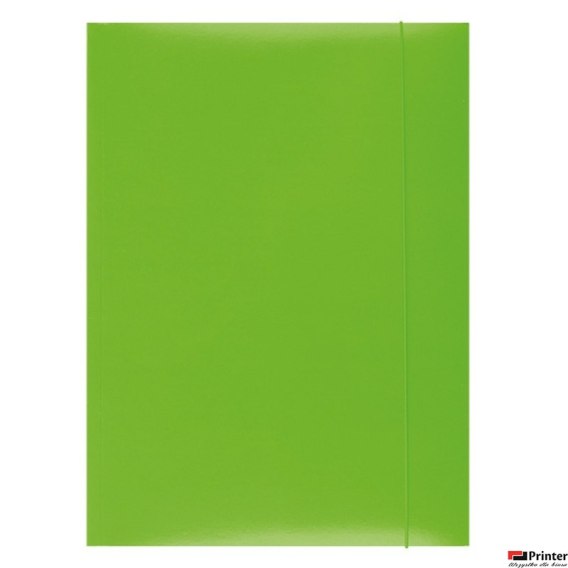 Teczka z gumką, wykonana z barwionego i lakierowanego kartonu o gramaturze 350gsm_3-skrzydłowa, lakierowana_zamykana za pomocą gumki wzdłuż dłuższego boku_format: A4_rozmiar: 232x320mm_kolor zielony