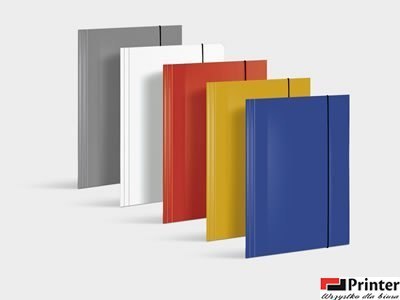 _wykonana z tektury _o gramaturze 450 g/m2__format A4__szerokość do 20mm__jednostronnie barwiona, powlekana folią polipropylenową___kremowa od wewnątrz__gumka w kolorze czarnym
