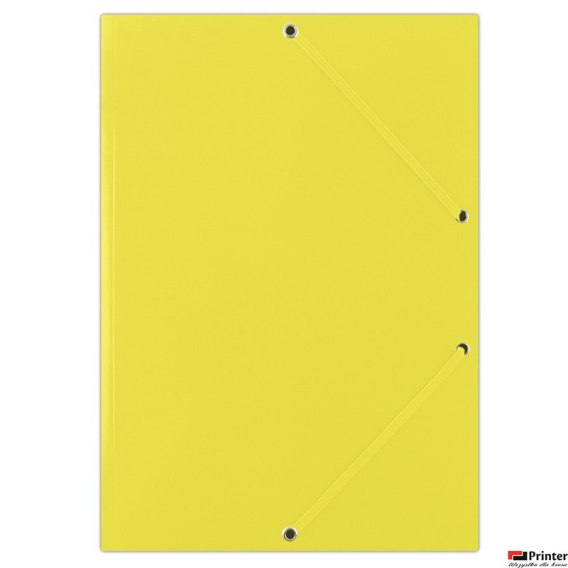Wykonana z kartonu o gramaturze 400gsm_posiada Zielony Punkt (Der Gr_ne Punkt) - udział w systemie recyklingu i odzysku odpadów wynikający z przepisów prawa polskiego i UE_3-skrzydłowa_jednostronnie pokryta lakierem drukarskim o wysokim połysku_zamykana za pomocą 2 płaskich, narożnych gumek w kolorze teczki nadruk gładki_format: A4_rozmiar: 232x320mm_kolor żółty