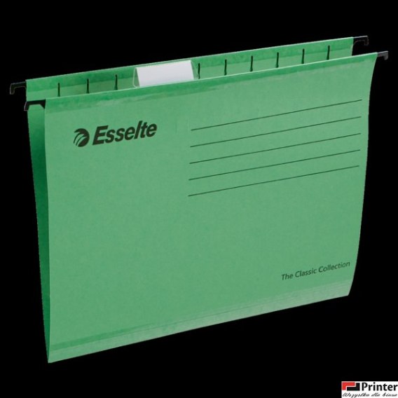 Teczka zawieszana Esselte_- wykonana z mocnego, wytrzymałego kartonu o gramaturze 210 gsm_- dostępne w pięciu żywych kolorach_- każda teczka ma w standardowym wyposażeniu identyfikator o szerokości 5 cm i białe etykiety_- format A4, ma dodatkowo wzmocnione, laminowane krawędzie przy zawieszkach oraz dno_- nowe, ulepszone cechy produktu od pierwszego kwartału 2011_- jednostka sprzedaży 1 opakowanie