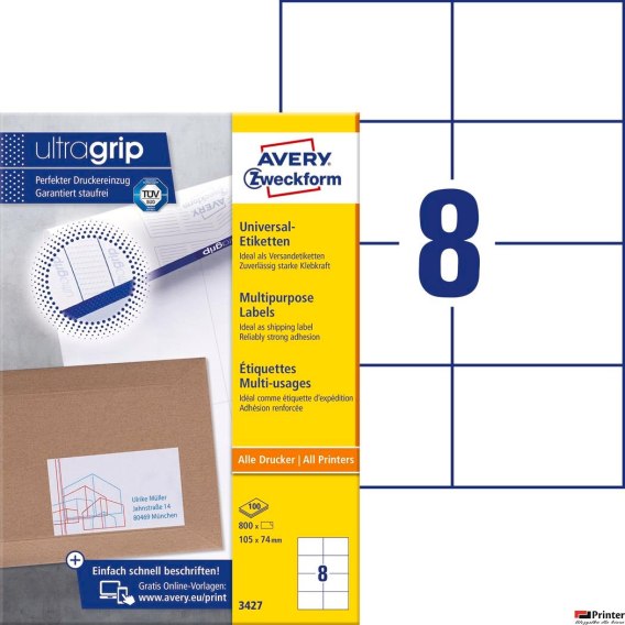 Trwałe etykiety uniwersalne 3427 105 x 74 100ark Avery Zweckform |