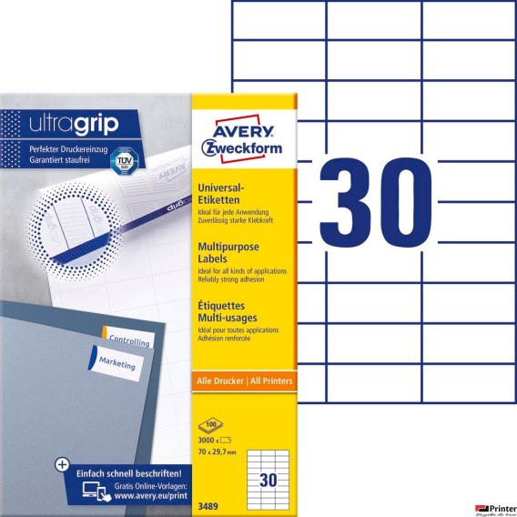 Trwałe etykiety uniwersalne 3489 70x29,7 100ark Avery Zweckform |