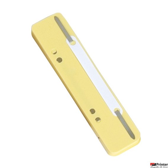 Metalowe wąsy skoroszytowe, spinające_posiada Zielony Punkt (Der Gr_ne Punkt) - udział w systemie recyklingu i odzysku odpadów wynikający z przepisów prawa polskiego i UE_podstawa wykonana z ekologicznego polipropylenu, wąsy wykonane z aluminium_4 dziurki do wpinania_rozmiar: 150x34mm_25 sztuk w j.s._kolor żółty