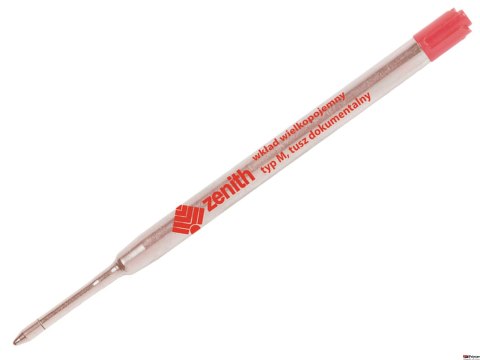 Wkład Zenith - 4 (20)_Metalowy wkład wielkopojemny, dostępny w trzech kolorach tuszu: niebieskim, czarnym, czerwonym. Jest to tusz dokumentalny, odporny na działanie światła i wody. Średnica kulki wkładu wynosi: 0,8 mm, szerokość linii pisania: 0,5 _ 0,7 mm, długość linii pisania: 3_500 m. Końcówka wkładu wykonana jest z mosiądzu wysokoniklowego, tzw. nowe srebro, i wyposażona w kulkę z węglika wolframu TC, co podnosi żywotność końcówki, dając równomierność parametrów pisania w trakcie całego okresu eksploatacji. Jednostka sprzedazy 1 opakowanie