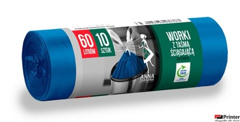 Worki na śmieci 60l supermocne z taśmą (10szt.) niebieskie ANNA ZARADNA 36363