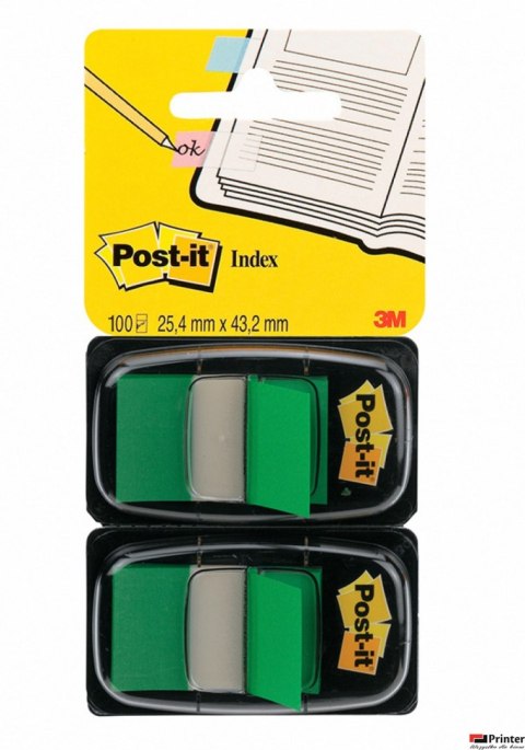 Zakładki indeksujące POST-IT_ (680-G2EU), PP, 25,4x43,2mm, 2x50 kart., zielone