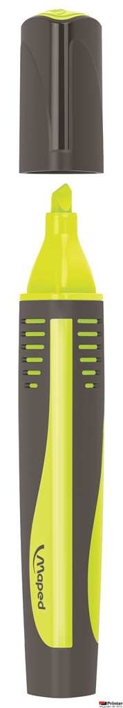 Zakreślacz FLUO PEPS MAX: podłużny kształt obudowy.Trójkątny uchwyt. Perforowane, miękkie boki zapewniają komfort kreślenia i zapobiegają wyślizgiwaniu się zakreślacza z dłoni.Tusz odporny na działanie swiatła - nietoksyczny o wysokiej wydajności i trwałości.Do wszystkich papierów standardowych, samokopiujacych, fotokopii, termopapierów i papierów faksowych. Pozostawione bez skuwki nawet po 4 godzinach nie tracą swoich właściwości. Ścięta końcówka umożliwia pisanie cienką i grubą linią od 1 do 5 mm. Kolor żółty. JS 10 szt.