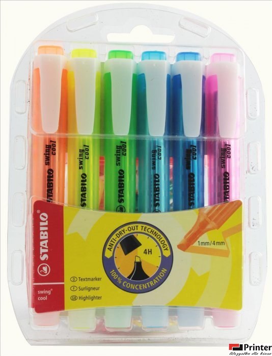 | Nazwa B2B | Zakreślacz STABILO swing cool, fluorescencyjny, zestaw 6 szt. w etui |