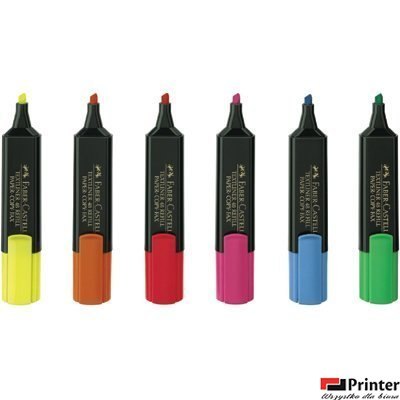 Zestaw zakreślaczy 1548 Faber-Castell 8 szt. (6 + 2 gratis) w półprzezroczystym etui. Wysokiej jakości superfluorescencyjne kolory, idealne do zaznaczania, podkreślania i wyróżniania. Klasyczne zakreślacze gwarantujące doskonałe rezultaty. Odpowiednie do wszystkich rodzajów papierów. Uniwersalny tusz na bazie wody, z możliwością wielokrotnego napełniania w prosty sposób tuszem 1549. Odporne na rozmazywanie. Ze ściętą końcówką o szerokości linii pisania 1 _ 5 mm. Dostępne w różnych kolorach i zestawach.