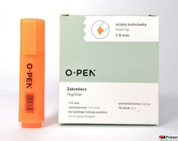 Zakreślacz pomarańczowy. Końcówka ścięta 1-5mm. Pigmentowy tusz odporny na działanie światła i wody. Do papieru zwykłego, samokopiującego i faksowego. Uwypukli istotne informacje, wspomoże proces przyswajania wiedzy. Pomaga w organizacji biura. Atrakcyjny design i niska cena.