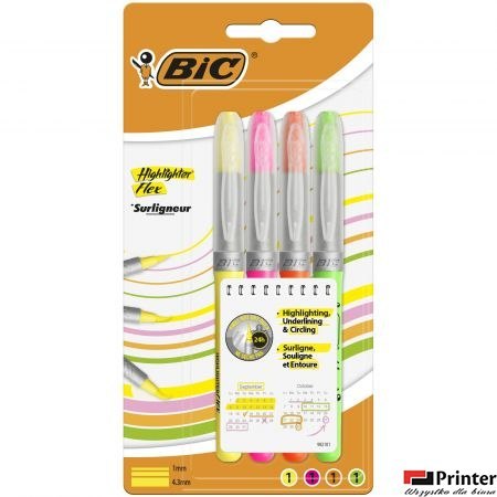 Zakreślacze BIC Highlighter Flex mix AST Etui 4szt, 950470