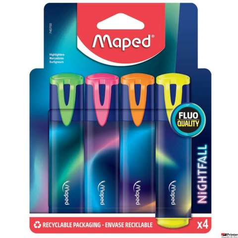 Zakreślacze Nightfall 4 kolory, ścięta końcówka 1-5 mm 740700 Maped