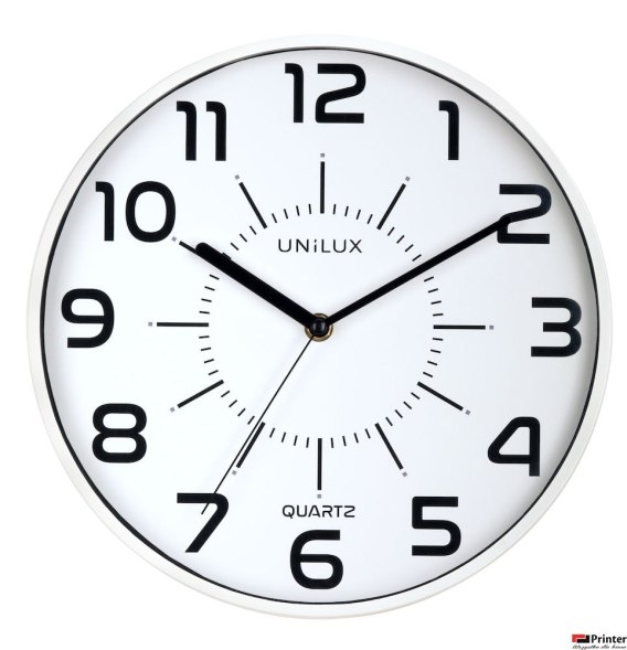 Zegar ścienny POP marki Unilux z obramowaniem z tworzywa sztucznego i osłoną szklaną. Zegar wyposażono w mechanizm kwarcowy - piezoelektryczny oraz płynną wskazówkę sekundnika czyniąc zegar bezgłośny, co wpływa na pozytywnie samopoczucie i koncentracje. Wyraźny cyferblat można odczytać z odległości do 30 metrów. Zegar POP to klasyczne wzornictwo z niezawodnym i ekonomicznym mechanizmem, to doskonały wybór do placówek edukacyjnych, pomieszczeń biurowych, urzędów itp.