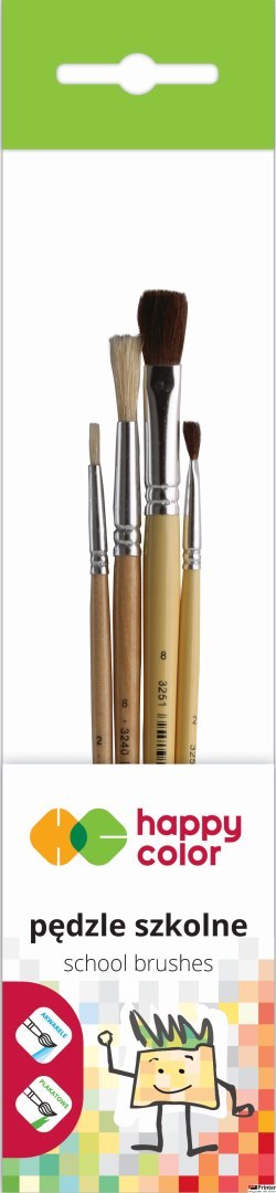 Zestaw pędzli szkolnych mix włosia A, 4 szt, Happy Color HA 3251 3240-01 PB4