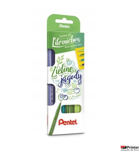 Zestaw pisaków pędzelkowych do kaligrafii i liternictwa ZIELONE JAGODY SES15C-ST4ADDKPL PENTEL