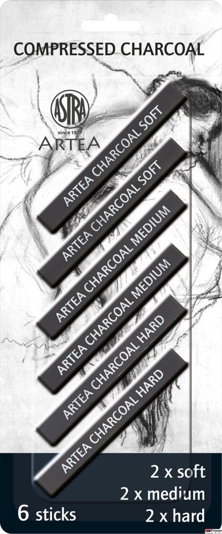 Zestaw węgli prasowanych Astra Artea 6 sztuk blister, 2 medium, 2 hard, 2 soft - czarny, 323115006