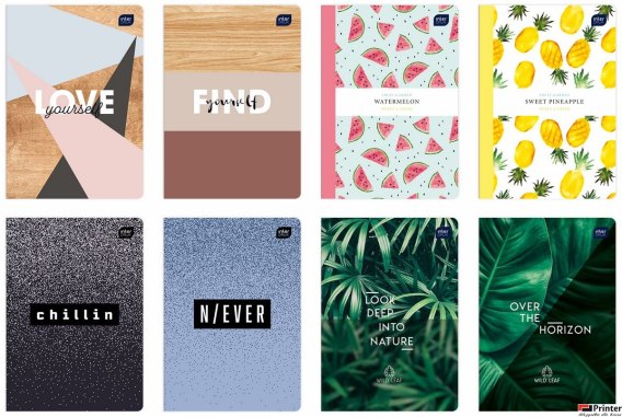Zeszyt__okładka pokryta lakierem UV__zaokrąglone rogi (format A5)__bogata kolorystyka i duża_różnorodność wzorów okładek__jednostka sprzedaży 1 sztuka