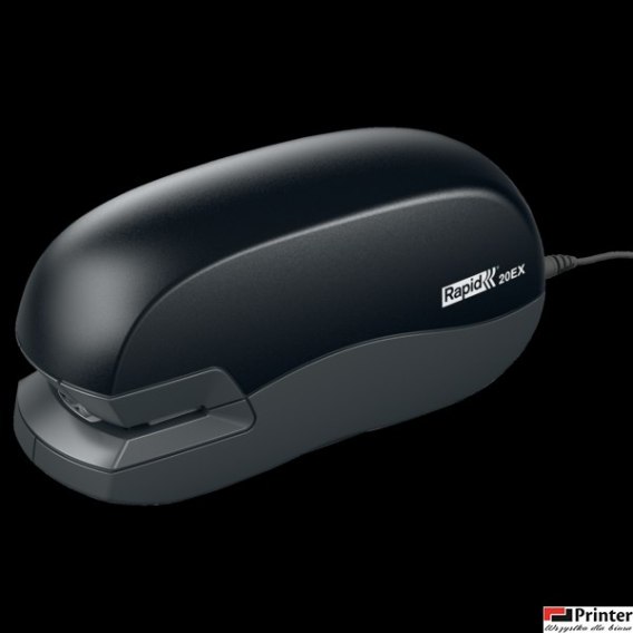 Zszywacz elektryczny 20EX Rapid_Kompaktowy elektryczny zszywacz do użycia w biurze,_recepcji lub domu. Zasilanie sieciowe za pomocą elektrycznego_zasilacza (w komplecie).__ładowany od przodu__zszywa do 20 kartek (papier 80 gsm)__wygodny w obsłudze jedną ręką__używany ze zszywkami Rapid Standard 24/6 i 26/6__2 lat gwarancji przy używaniu zszywek Rapid__jednostka sprzedaży 1 sztuka